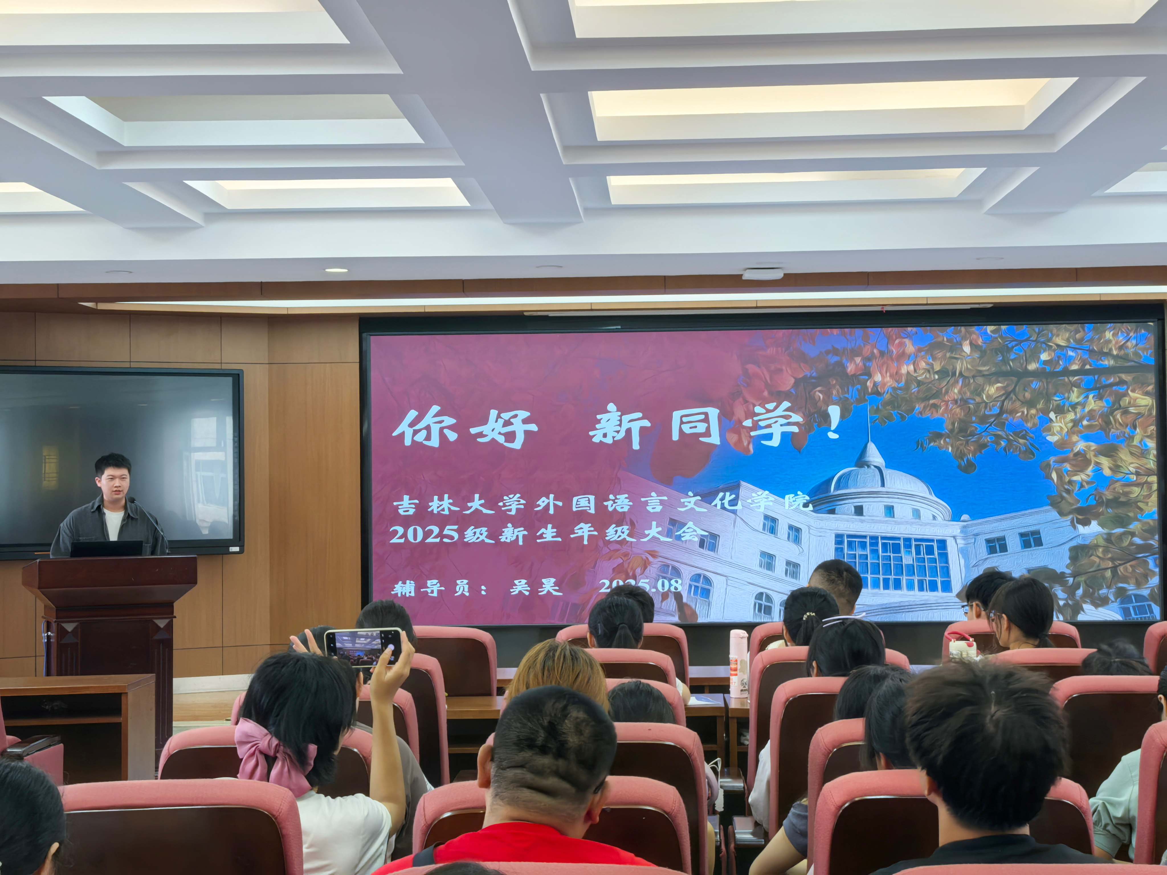 8月25日上午,外国语言文化学院2025级新生入学教育暨年级大会在外语楼500会议室成功召开,2025级新生辅导员吴昊担任主讲人,全体新生参会。