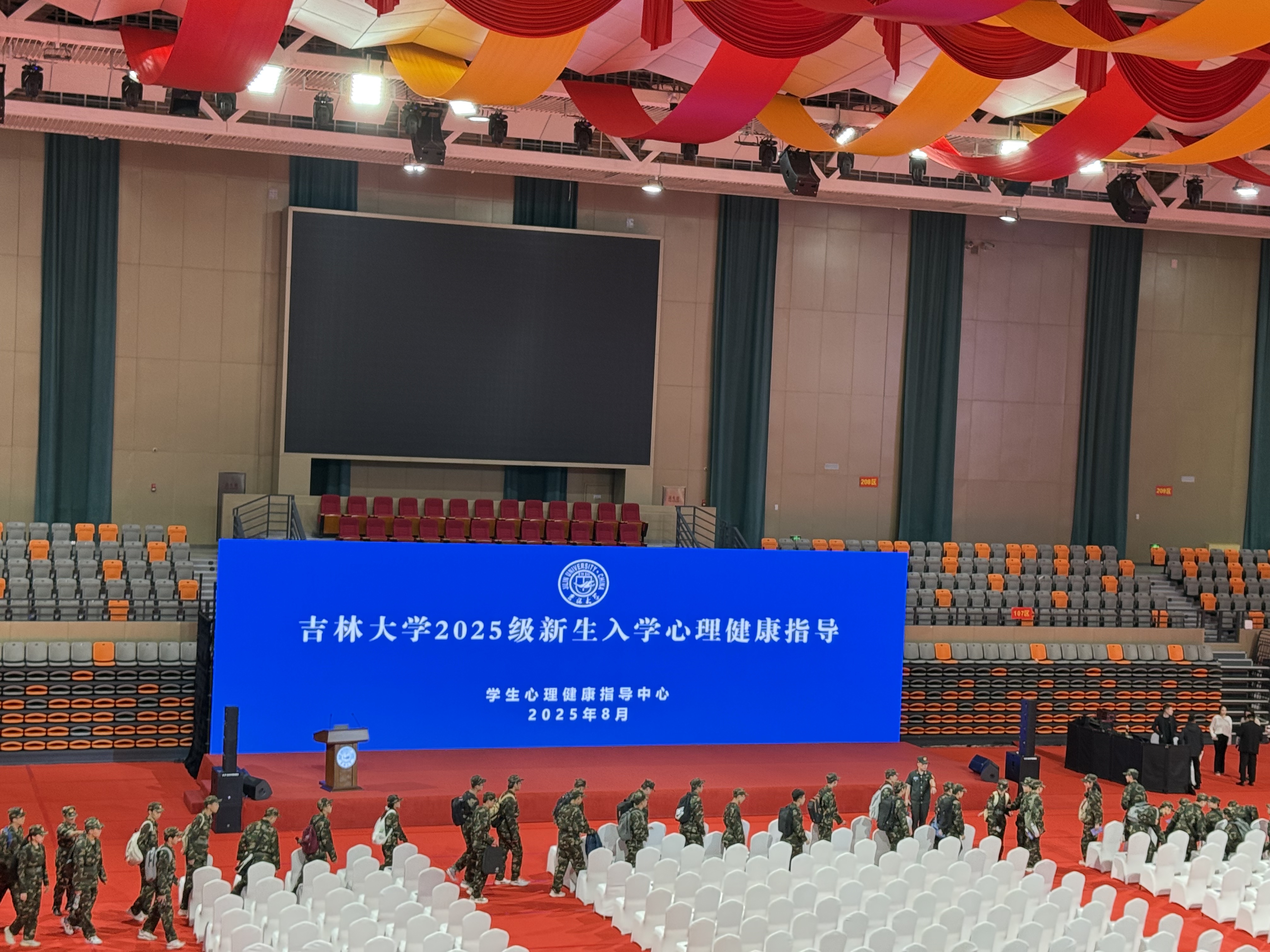 8月29日,外国语言文化学院于宋治平体育馆组织2025级新生参加新生入学心理健康指导活动,由吉林大学学生心理健康指导中心专业教师为新生开展心理健康教育,为新生筑牢心理防线、适应大学生活注入“心能量”。