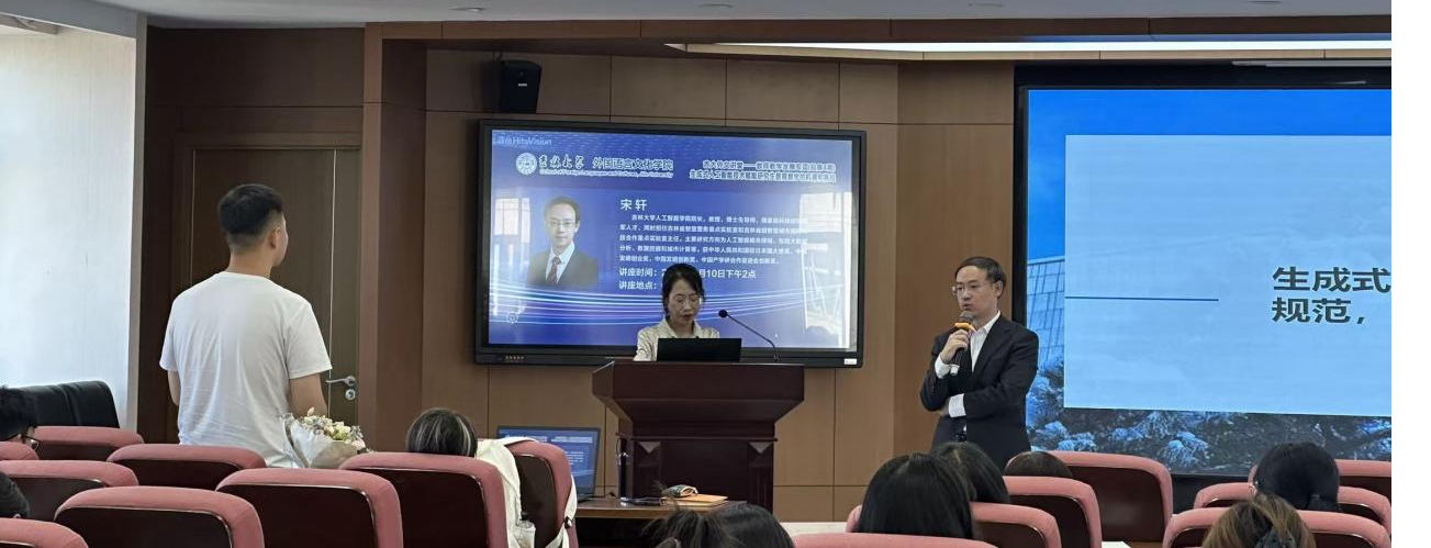 为紧跟数智化时代的步伐,助力学院教师提升信息化素养及教学水平,进一步推动高质量教育体系建设,外国语言文化学院于9月10日下午14时,在外语楼500报告厅举办了“生成式人工智能技术赋能研究生教育教学的机遇和挑战”教师发展专项讲座。此次讲座特邀人工智能学院院长宋轩教授担任主讲嘉宾,讲座由外国语言文化学院副院长金晶主持,80余名师生参与此次讲座。