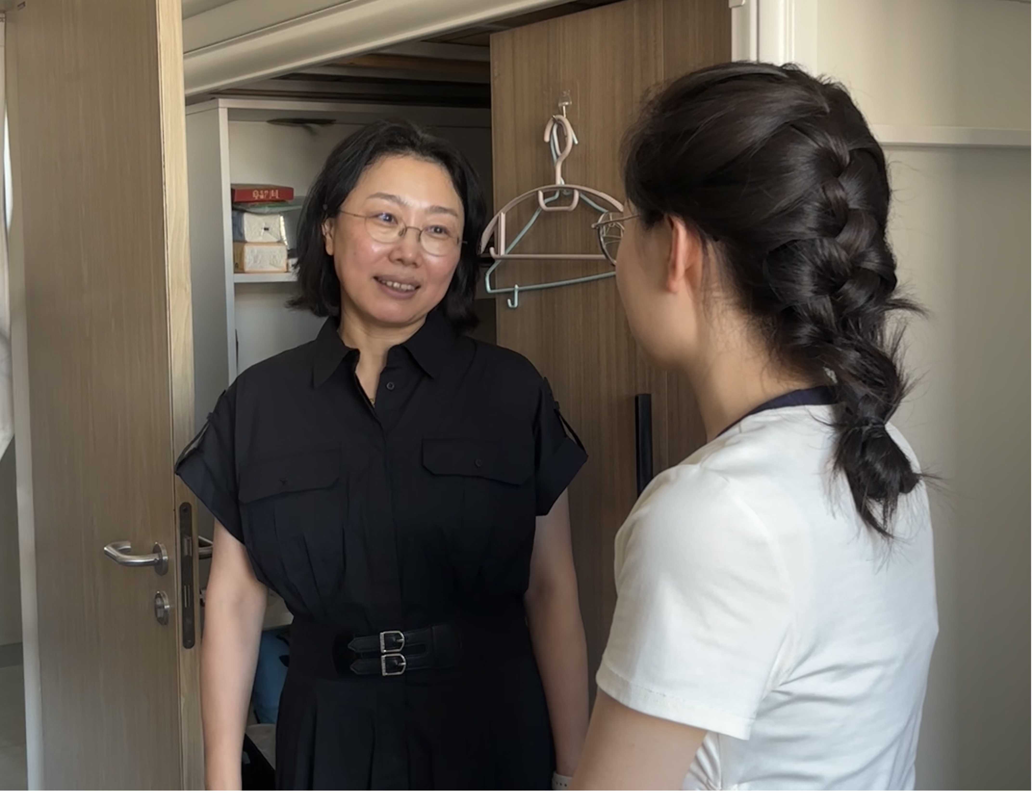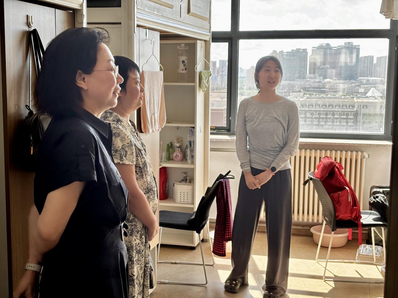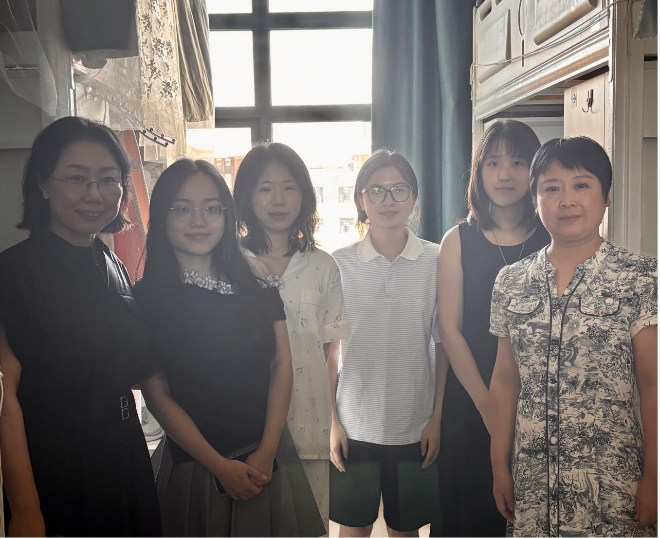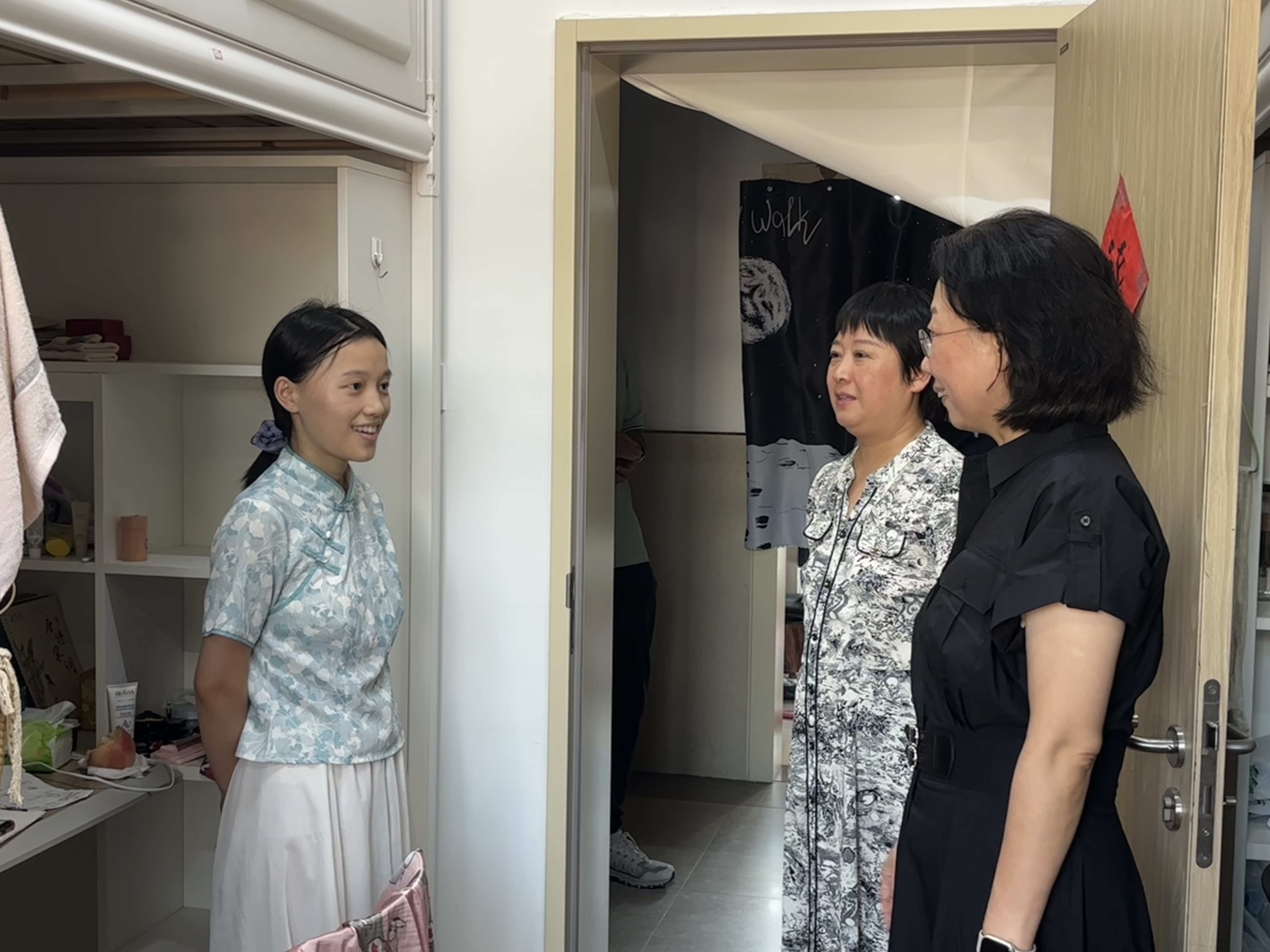 潘海英院长一行带着对新生的牵挂,先后走访了多个新生寝室。每进入一间寝室,潘院长都热情地与同学们打招呼,询问了新生对校园环境的初步印象及入学后的实际需求,徐杰书记也就研究生阶段的学习规划与心理健康等话题与同学们亲切交流。一句句暖心的问候、一次次耐心的倾听,驱散了新生初入校园的陌生感,让寝室里充满了温馨融洽的氛围。