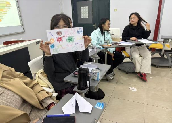 “如果…我可以…”认知重构练习中两人一组的互动让同学们掌握调整负性思维的方法;“我的心灵后盾” 帮助大家梳理支持系统,帮助同学们认识到心理韧性并非孤军奋战,而是善于求助与联结;“共创心事画卷”环节。同学们轮流在两张纸上分别画出“烦恼的具象化”和“解决烦恼后的具象化感受”。通过画笔表达情绪,同学们在创作中释放压力,也在对比中体会到韧性带来的积极转变。