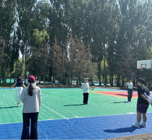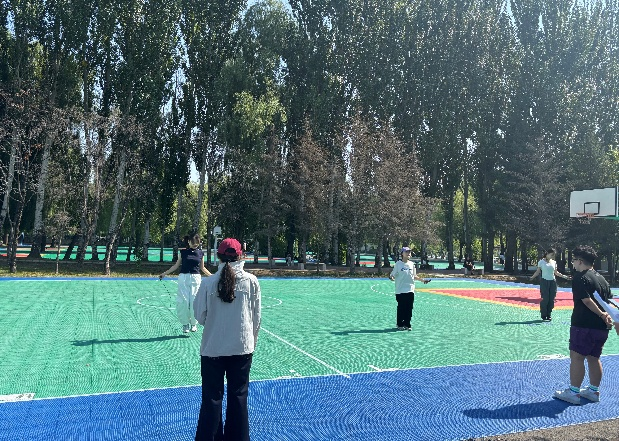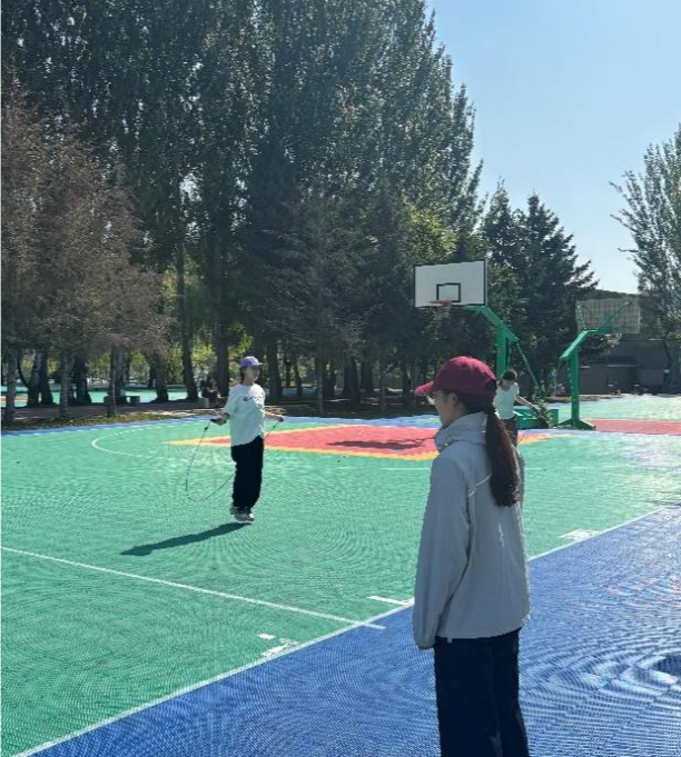 个人项目也同样精彩。一分钟踢毽子和跳绳项目中,同学们全神贯注、动作敏捷,场边计数与助威声此起彼伏;羽毛球发球竞赛中,选手们瞄准目标区域精准发球,每一次漂亮的落点都引来阵阵欢呼,既展现了个人运动技巧,也让现场充满竞技的乐趣。