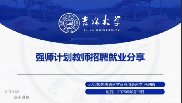 为帮助学生深入了解长春公立中学教师招聘、工作情况,明晰就业发展方向,提高求职竞争力,外国语言文化学院于2025年10月16日晚举办“职引未来·语你同行”——强师计划·教师招聘就业分享会。此次分享会由学院中心研究生会发展指导部部长赵倩主持,学院2022级毕业生冯琳皓、王雪莹、王瑞晗主讲,研究生辅导员林明帅和各年级研究生同学线上参会。