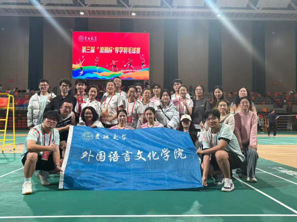 为了丰富学院校园文化氛围、拉近导学关系、带动师生健身,2025年11月29日——30日外国语言文化学院组队积极参与了吉林大学第三届“浪潮杯”导学羽毛球团体赛。此次比赛由学院热爱羽毛球的教师与研究生组建了三支代表队参赛。