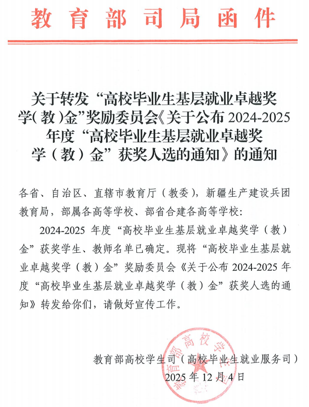王乃卉的成长与获奖,是吉大学子扎根基层、矢志奋斗的生动缩影,更是学院人才培养成效的有力印证。花山不语,见证青春担当;岁月有声,铭刻奋斗足迹。学院始终坚守“为党育人、为国育才”初心,通过构建就业指导体系、弘扬基层就业典型事迹,引导学生将个人理想融入国家发展大局,鼓励更多学子奔赴基层、扎根一线,在祖国最需要的地方淬炼成长,让青春之花在基层沃土中绽放出更加绚丽的光彩!